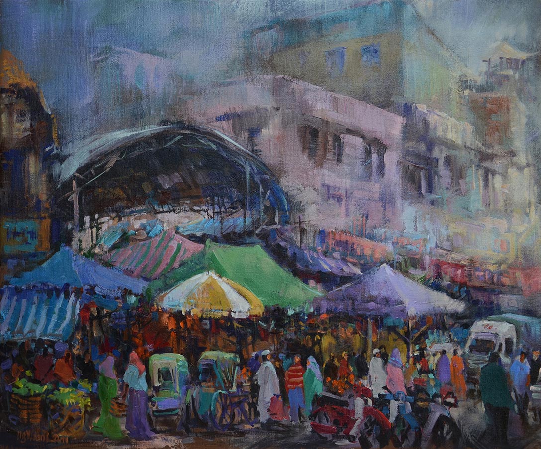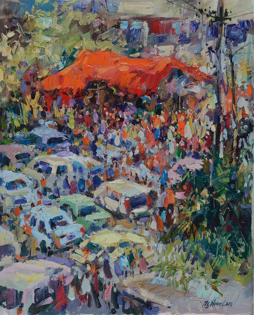 Woon Lam lives with his strong learning desire and artistic emotions. He finds the richness of pallette perfect in exerting his personal feelings. He employs rich color and lively brushstrokes to create vibrant paintings. His color and brushstrokes reveal his strong sense of composition and feeling for life. |